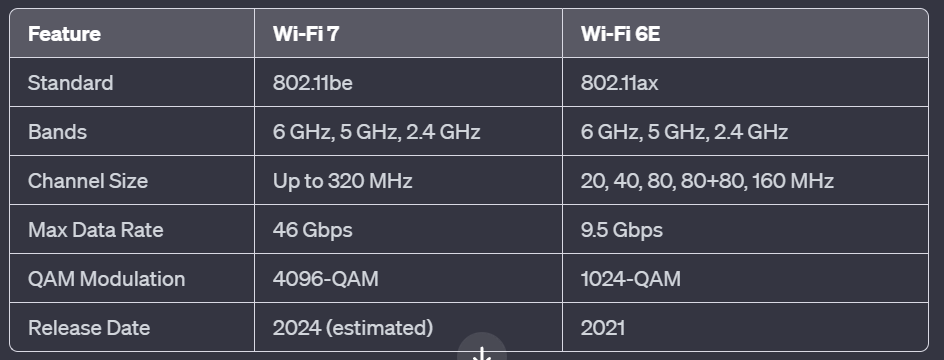 Comparison between Wi-Fi 7 and Wi-Fi 6: