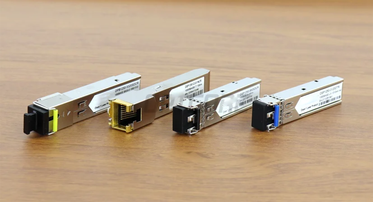 SFP (Small Form-Factor Pluggable): A small, pluggable optical module, widely used in standards such as Gigabit Ethernet (GbE) and 10 Gigabit Ethernet (10GbE).